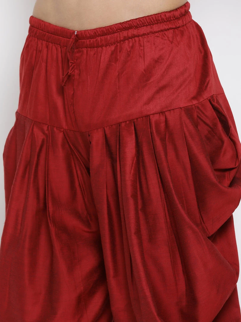 Maroon solid dhoti pant, has elasticated waistband and drawstring closure