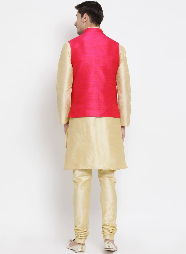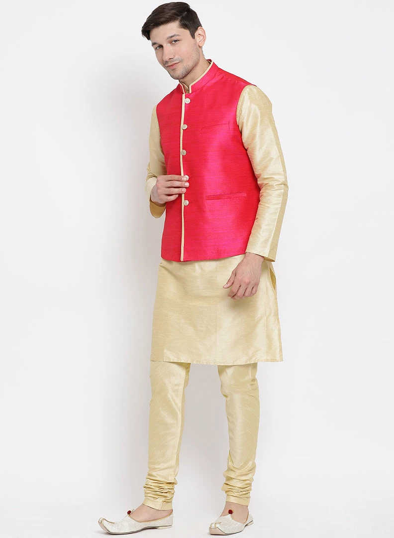 This elegant and trendy Kurta set from VASTRAMAY will be a great add-on to your ethnic collection. Team it with a pair of semiformal shoes or Kolhapuris to get the complete look.