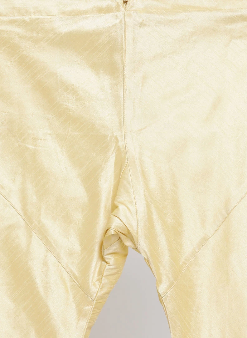Gold Solid Kurta, Knee Length. Full Sleeve, Straight Hem, Regular Style, has a Mandarin Collar.