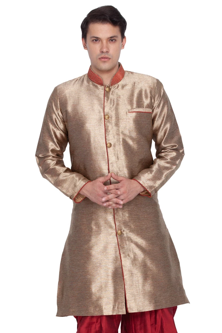 Sport this classic sherwani set from VASTRAMAY this season. Dress this piece up with your favorite accessories and head out to any family event in style.