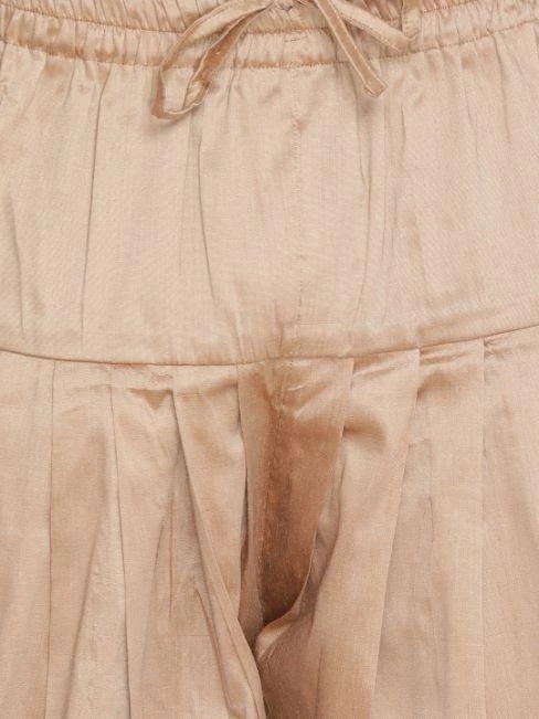 Beige solid dhoti pant has elasticated waistband and drawstring closure