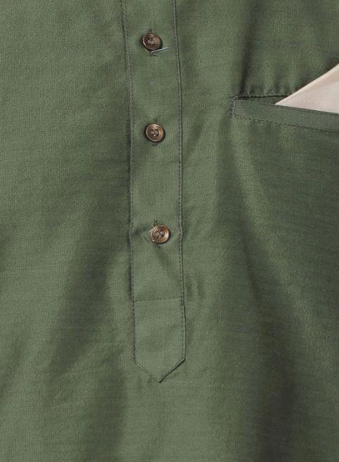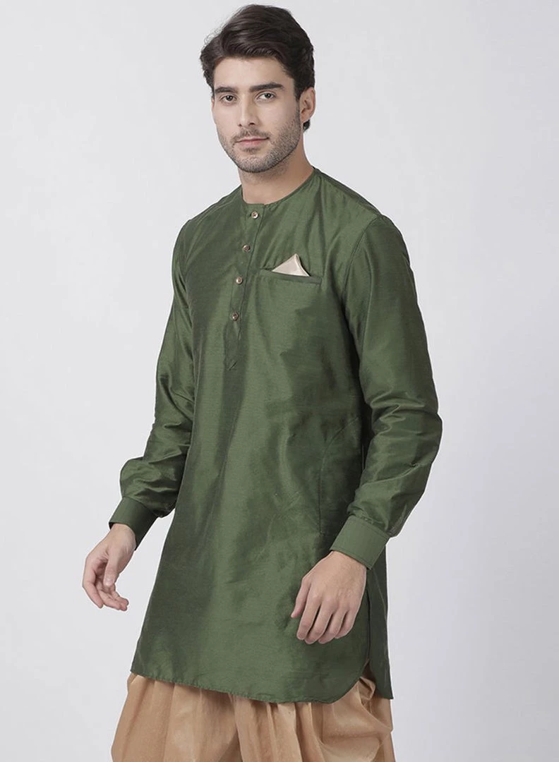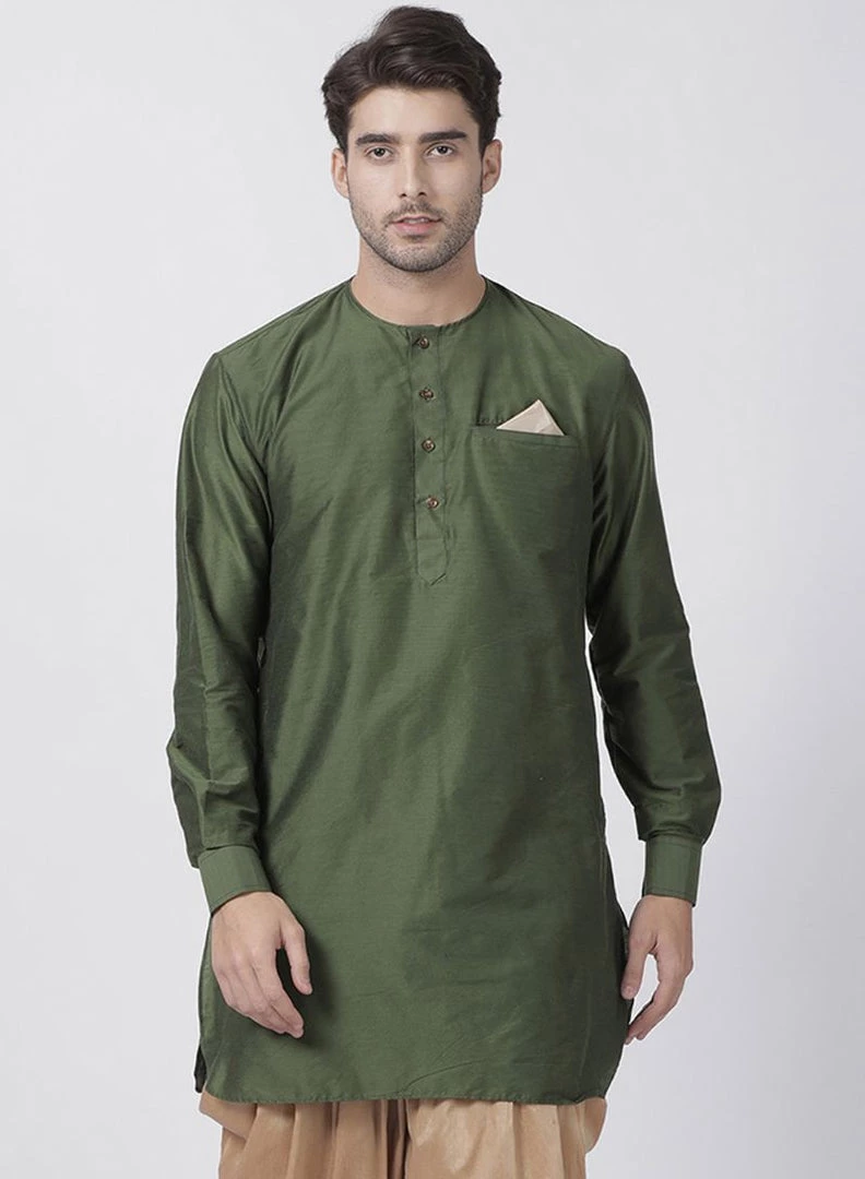 Green solid straight Hip length kurta, has a Round Neck, button placket, long sleeves, Straight hem, Pocket with a pocket square.