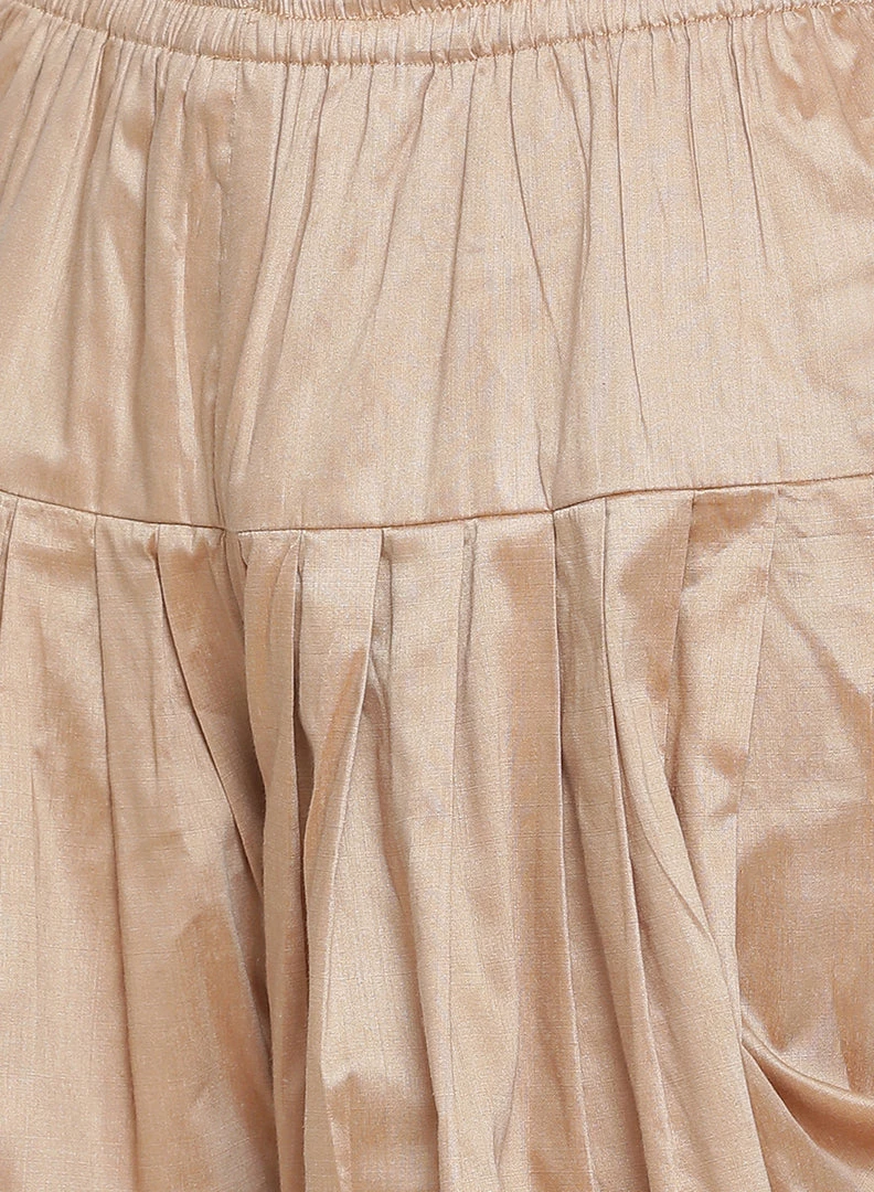 Beige solid dhoti pant, has elasticated waistband and drawstring closure