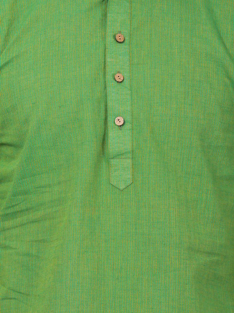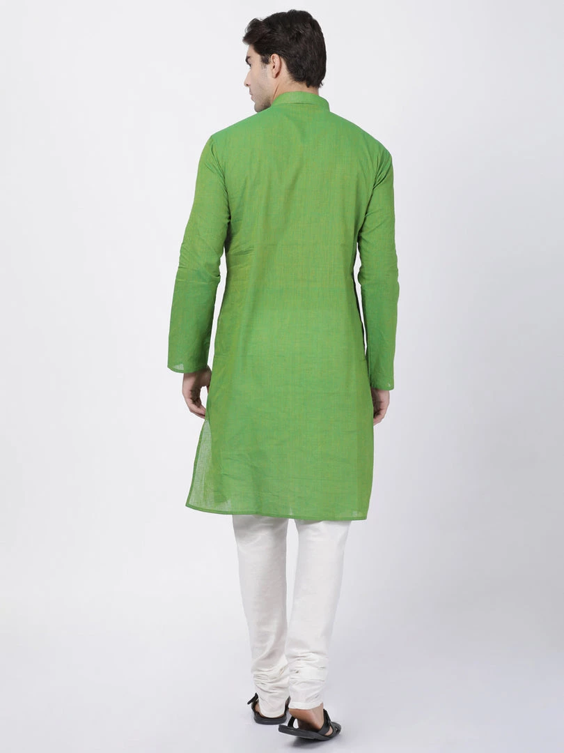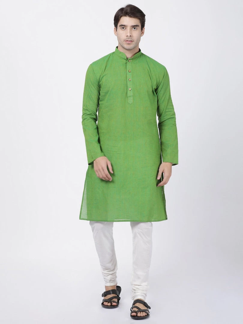 Green Solid straight Knee length kurta, has a Mandarin Collar, button placket, long sleeves, Straight hem, Side slits.
