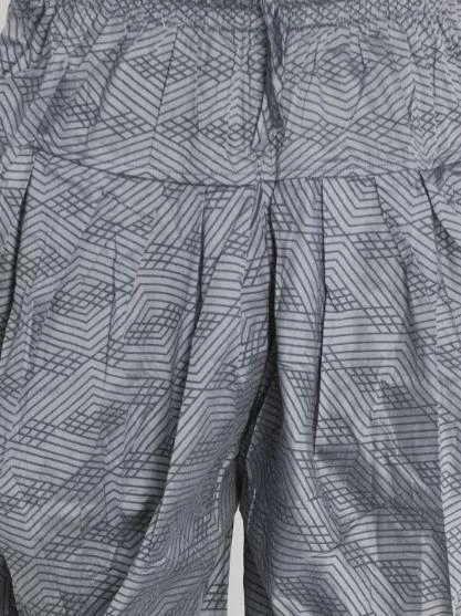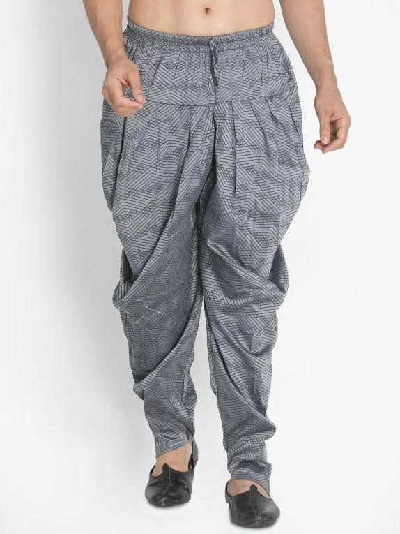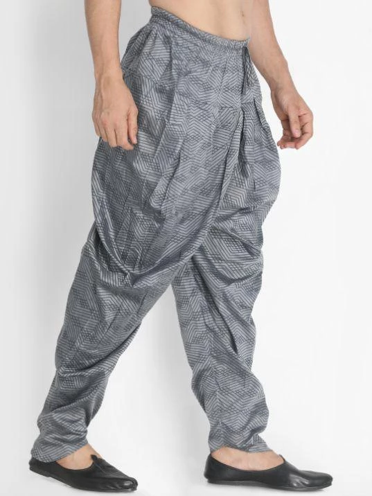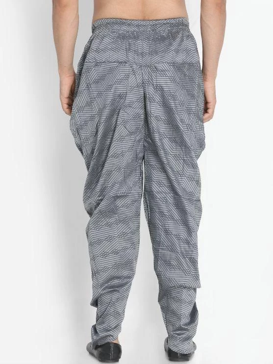 Black and grey printed dhoti pants with pleats forming cowl on sides, has an elasticated waistband with draw-string closure