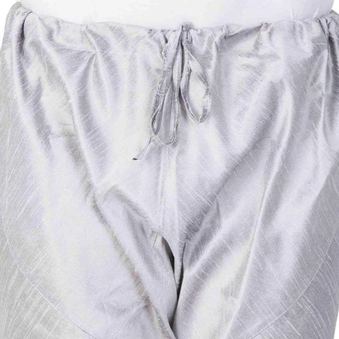 A pair of grey solid churidar, has drawstring closure