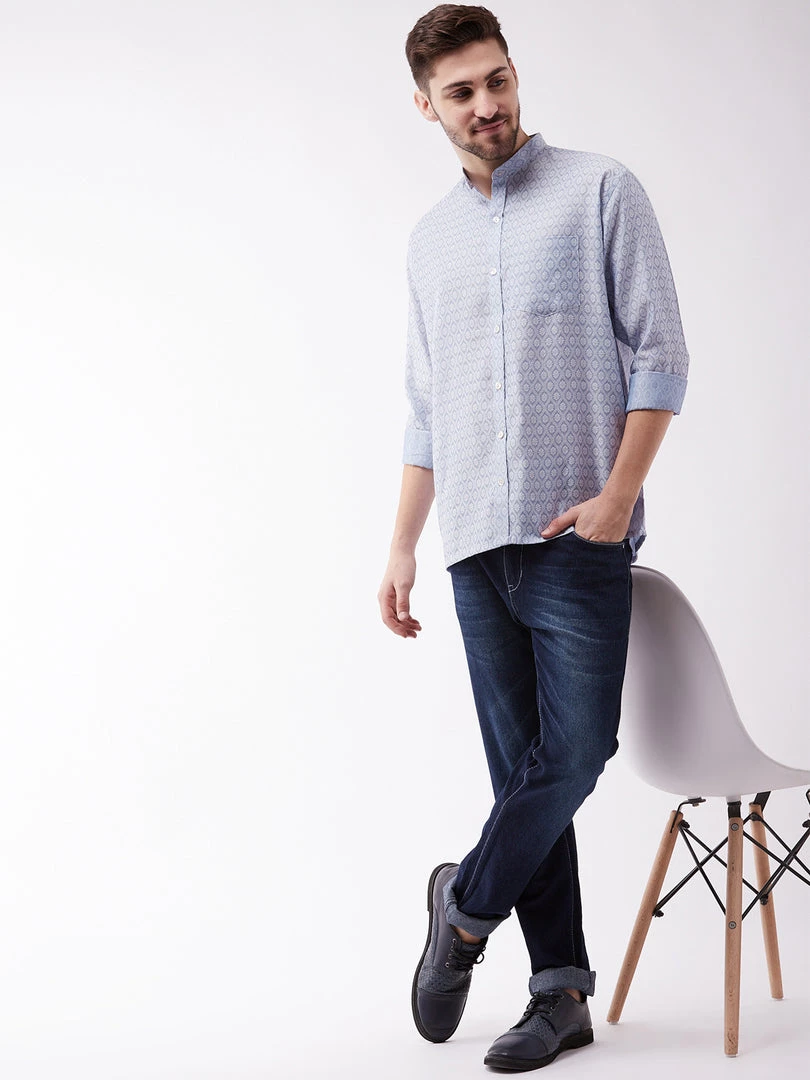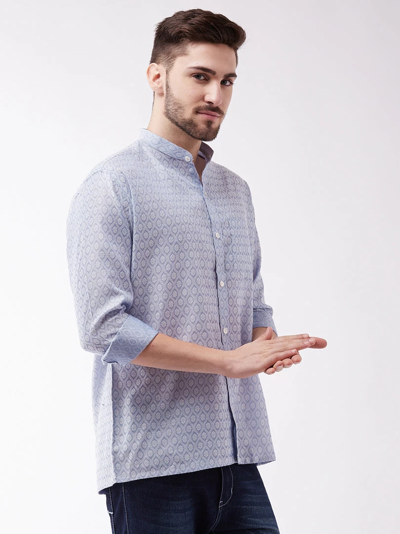 Banarasi Silk Blend Jacquard Fabric Indo Ethnic Shirt, has a Mandarin collar, Long sleeves, straight hem, one patch pocket