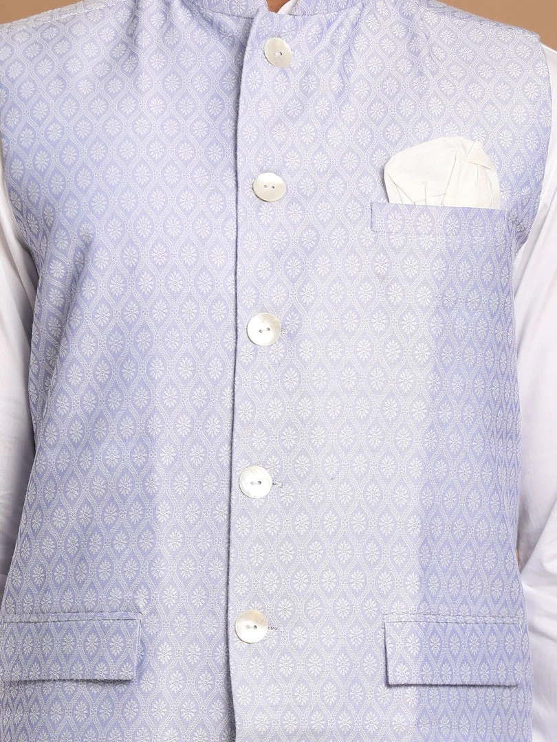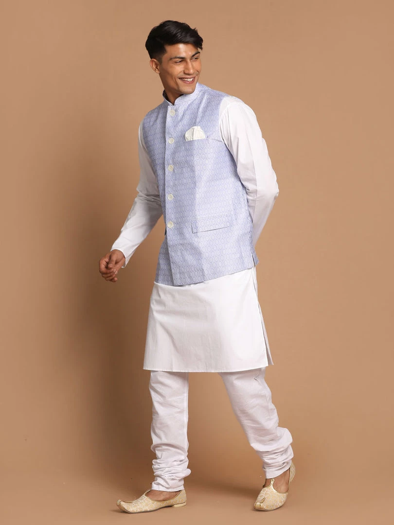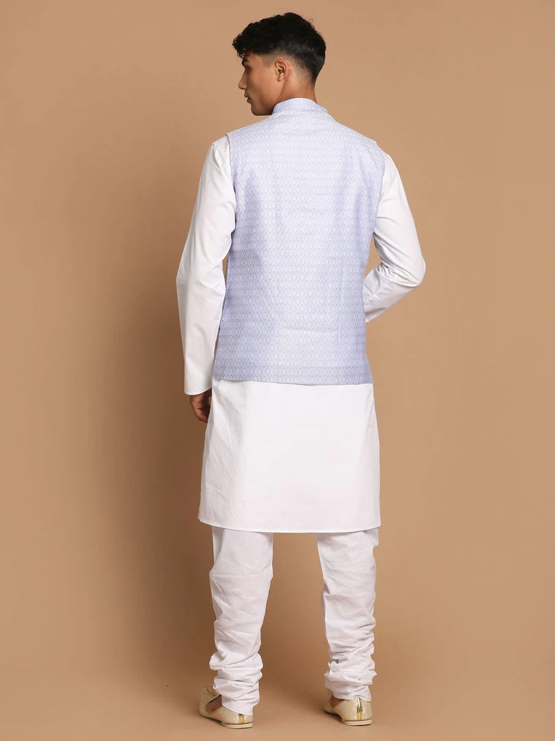 White Solid kurta with solid Pyjama and Classic silk-blend Woven Nehru Jacket