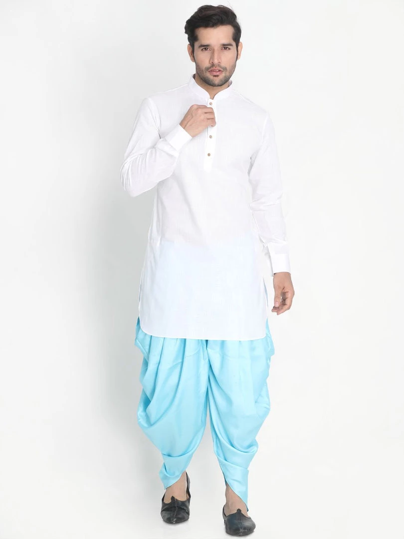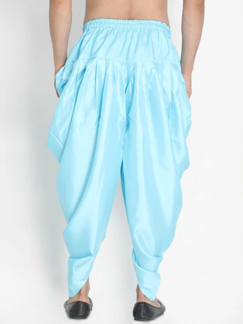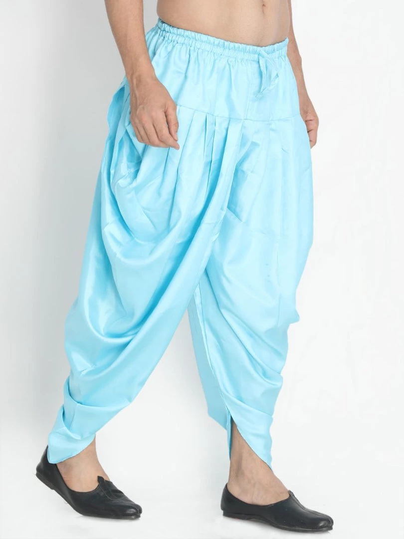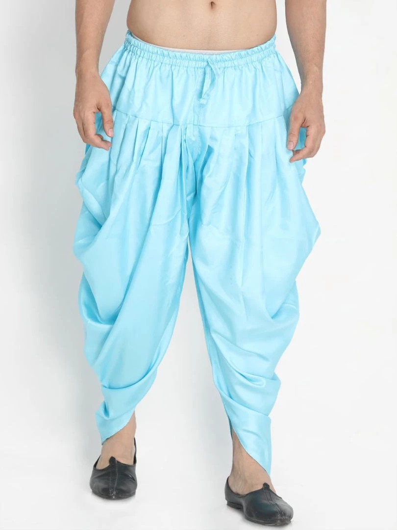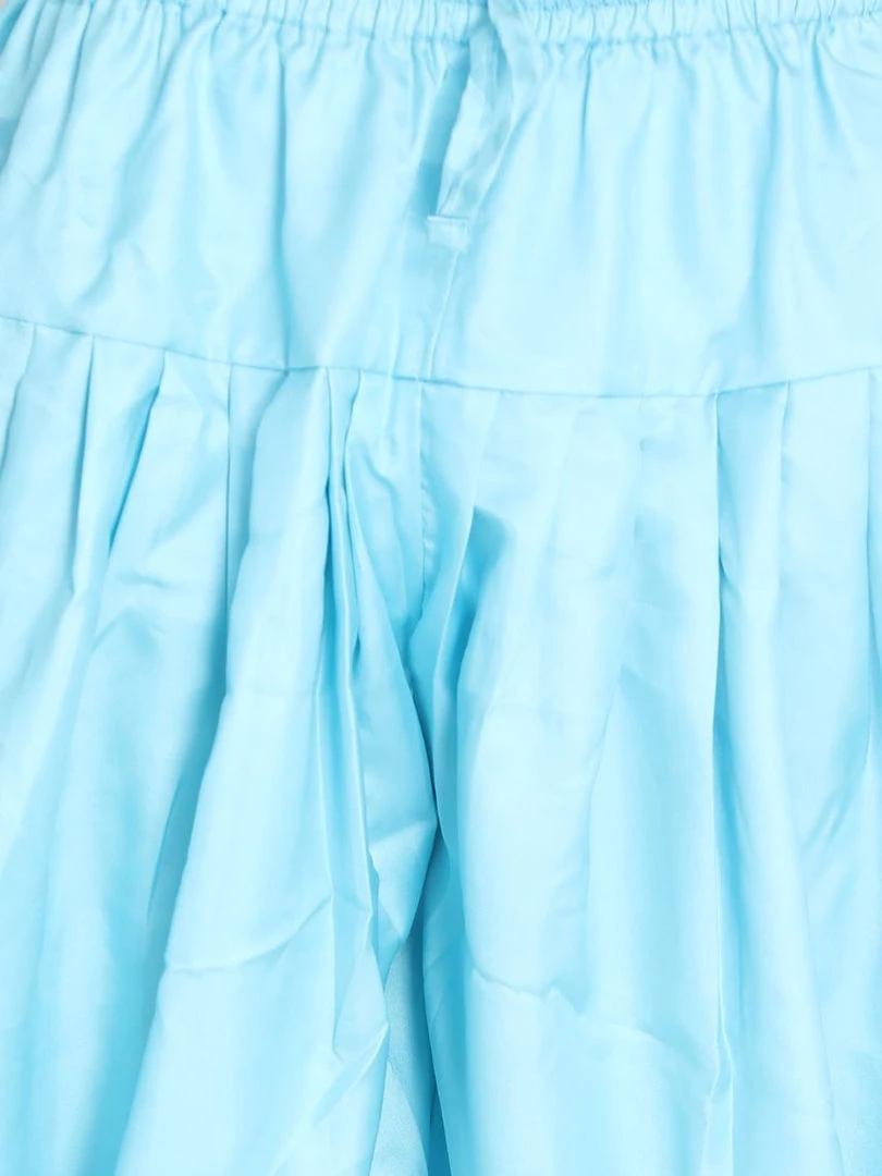 Light blue solid dhoti pant with pleats forming cowl on sides, has an elasticated waistband with draw-string closure
