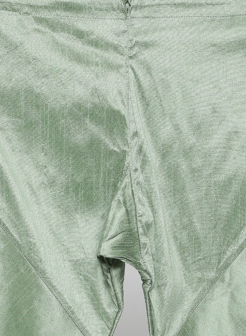 From VASTRAMAY, this kurta set is a great way to show off your style. Dress this green piece up with your favorite accessories and head out to any family event in style.