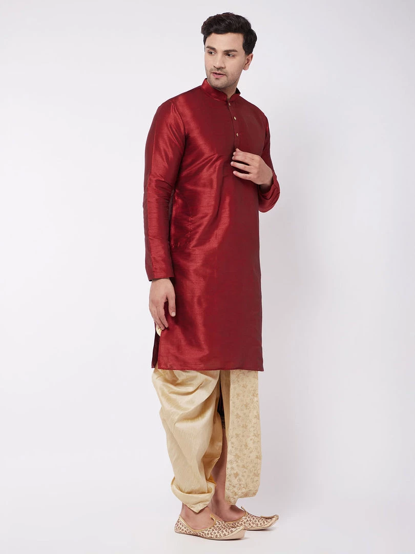Maroon Solid Kurta with Gold Embroidered Dhoti