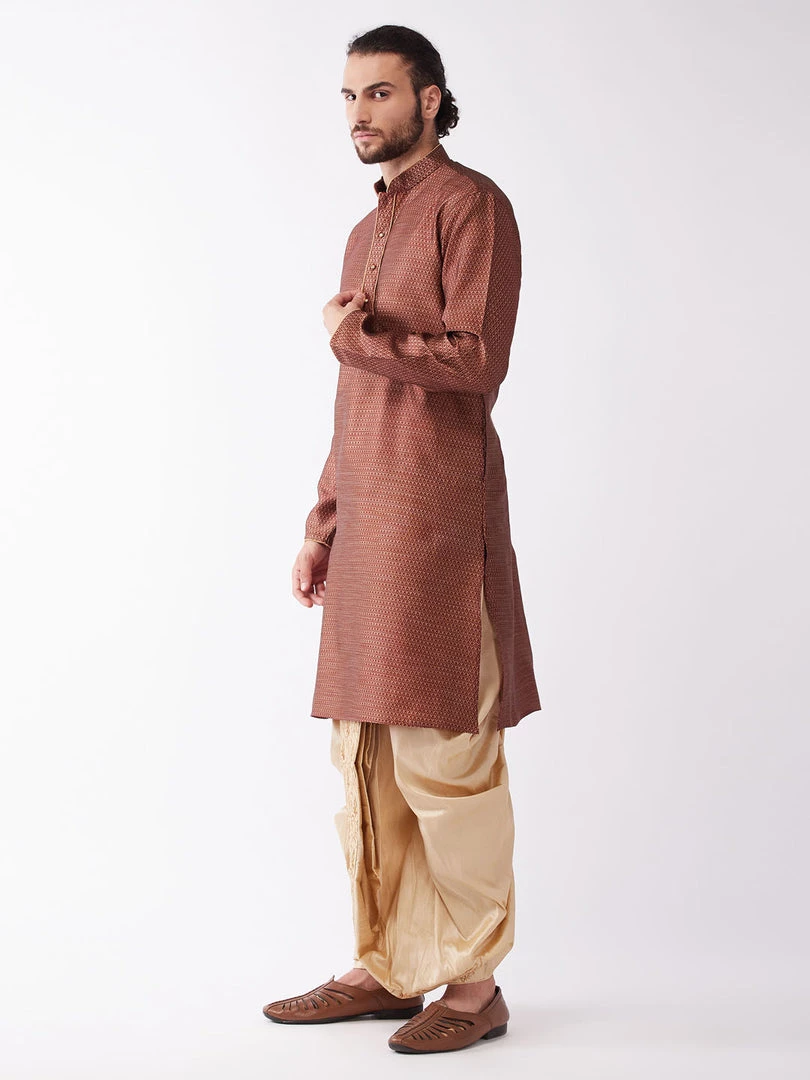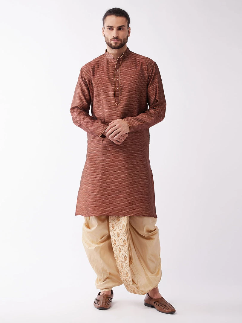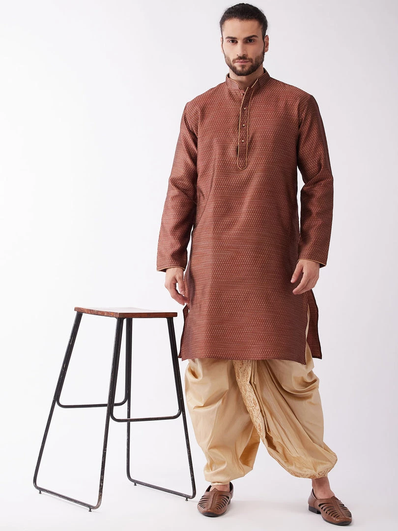 Maroon and Gold woven kurta with Embroidered dhoti pant set