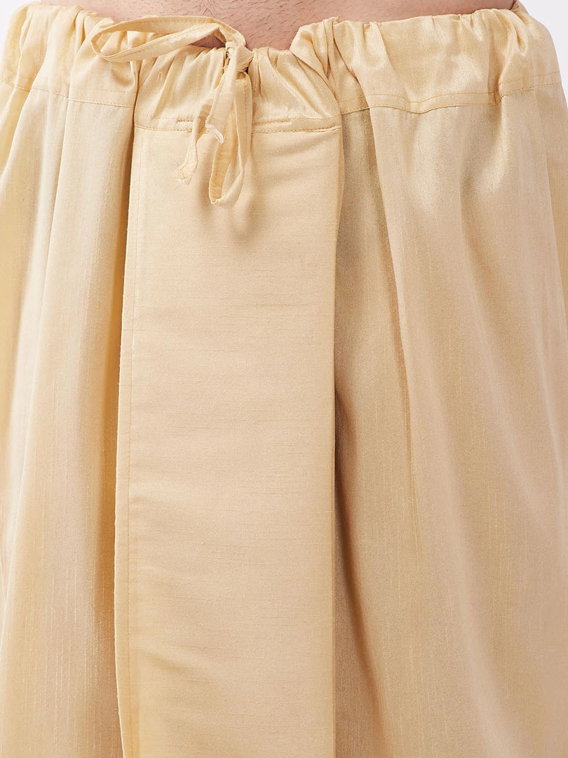 Maroon and Gold-toned kurta with Dhoti and Cream colored woven Nehru jacket