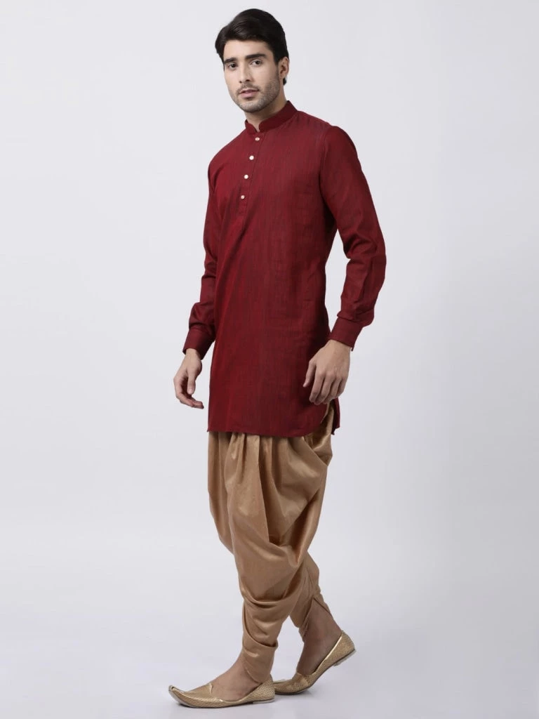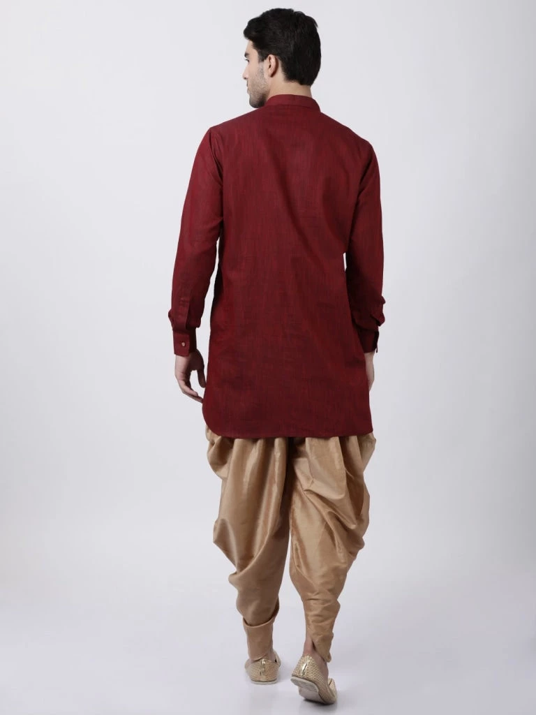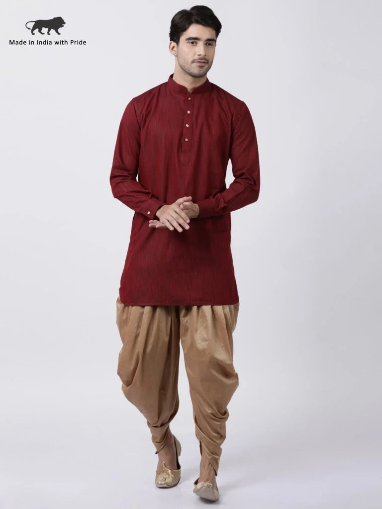 Maroon and golden solid kurta and dhoti pant set