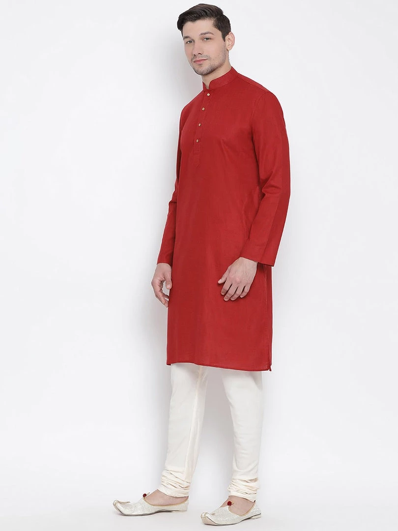 Maroon solid straight knee length kurta, has a mandarin collar, button placket, long sleeves, straight hem