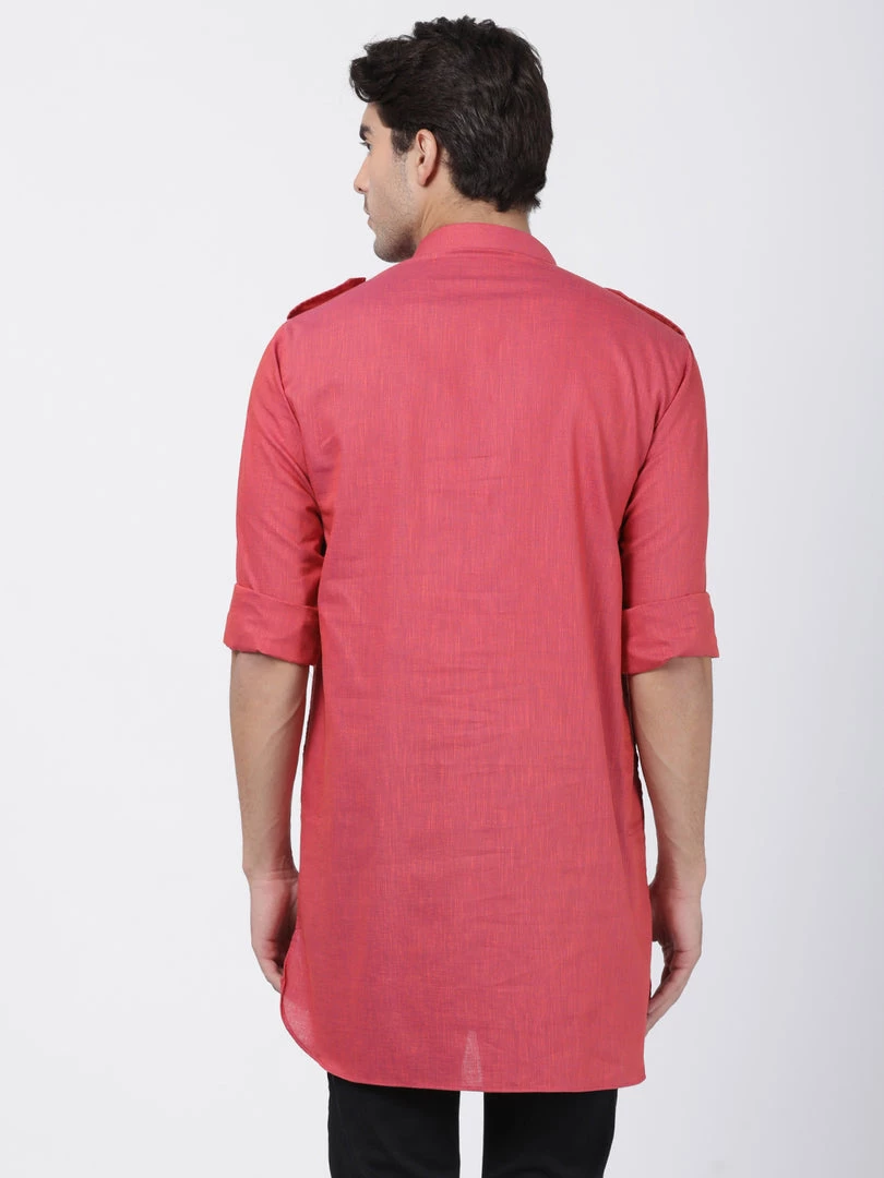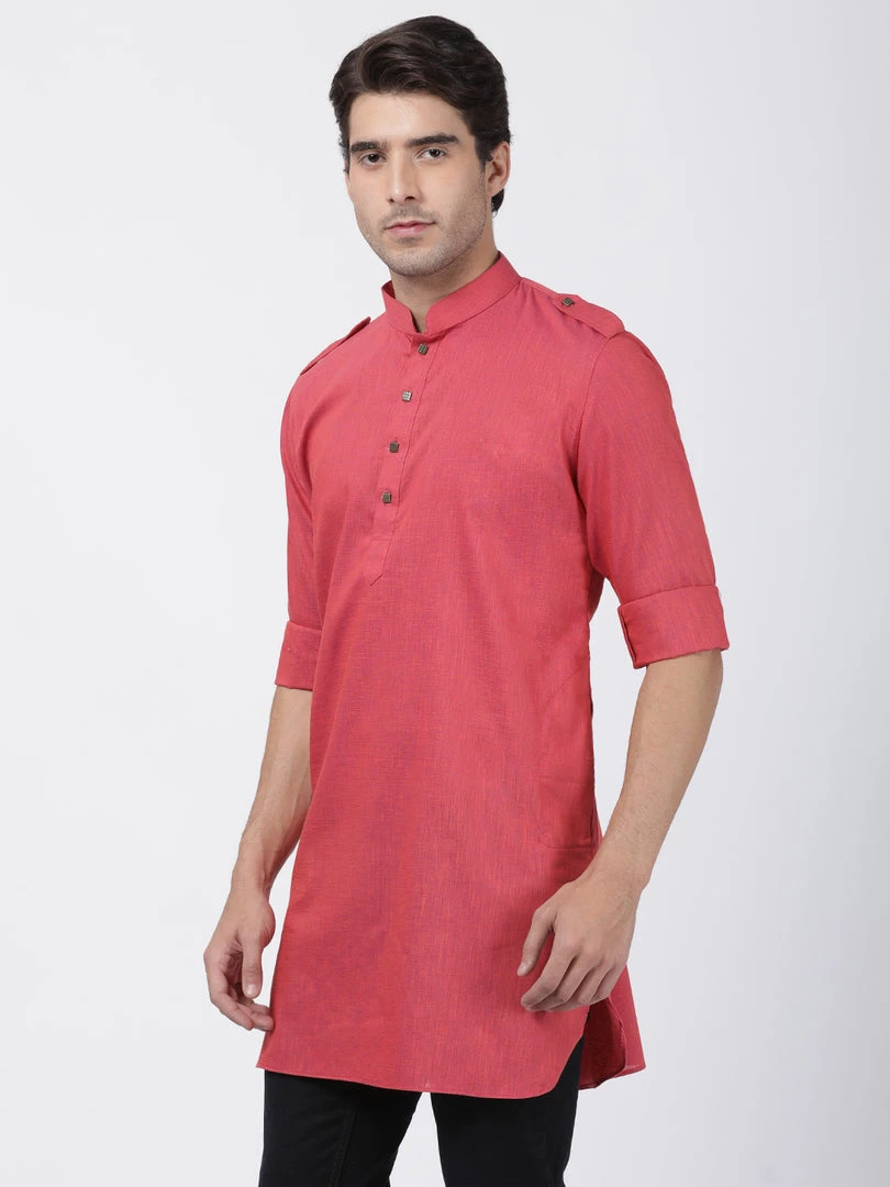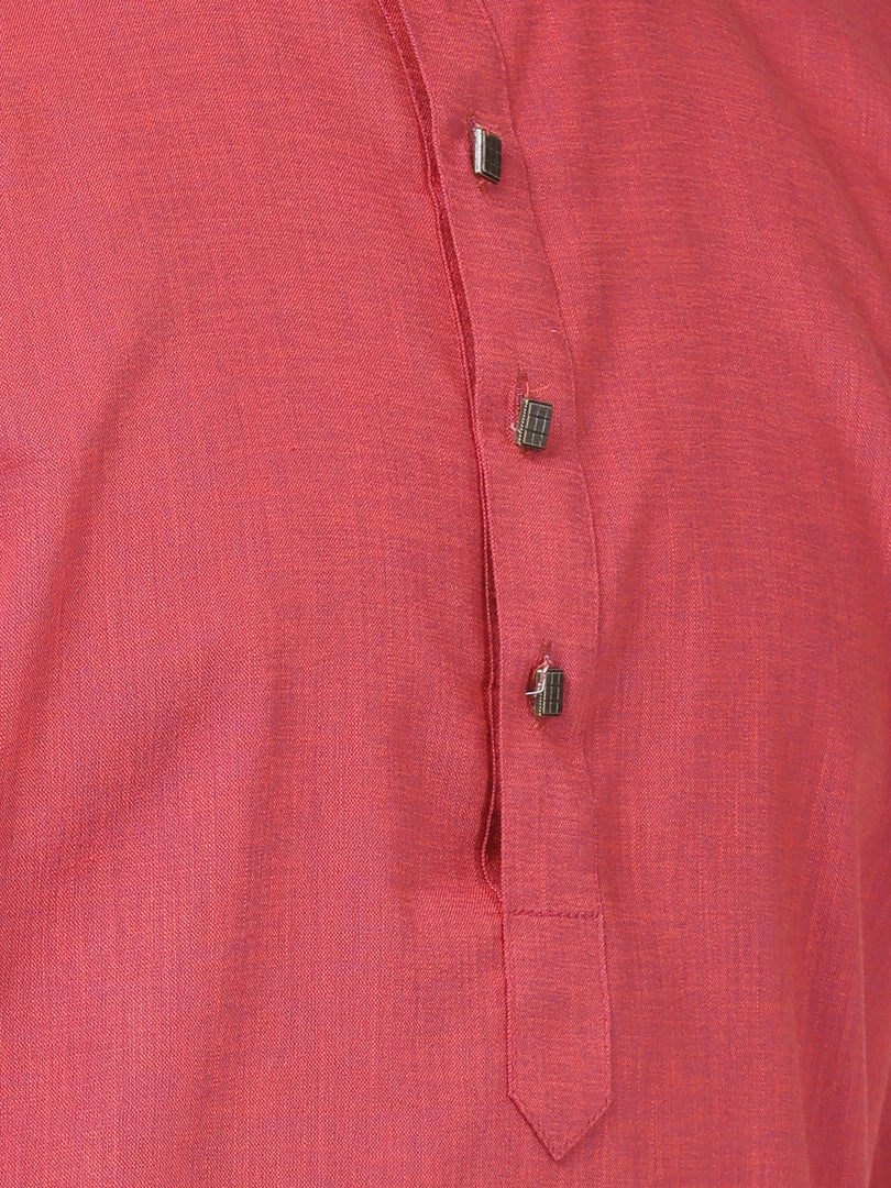 Maroon straight kurta, has a mandarin collar, long sleeves, button placket, curved hem and side slits