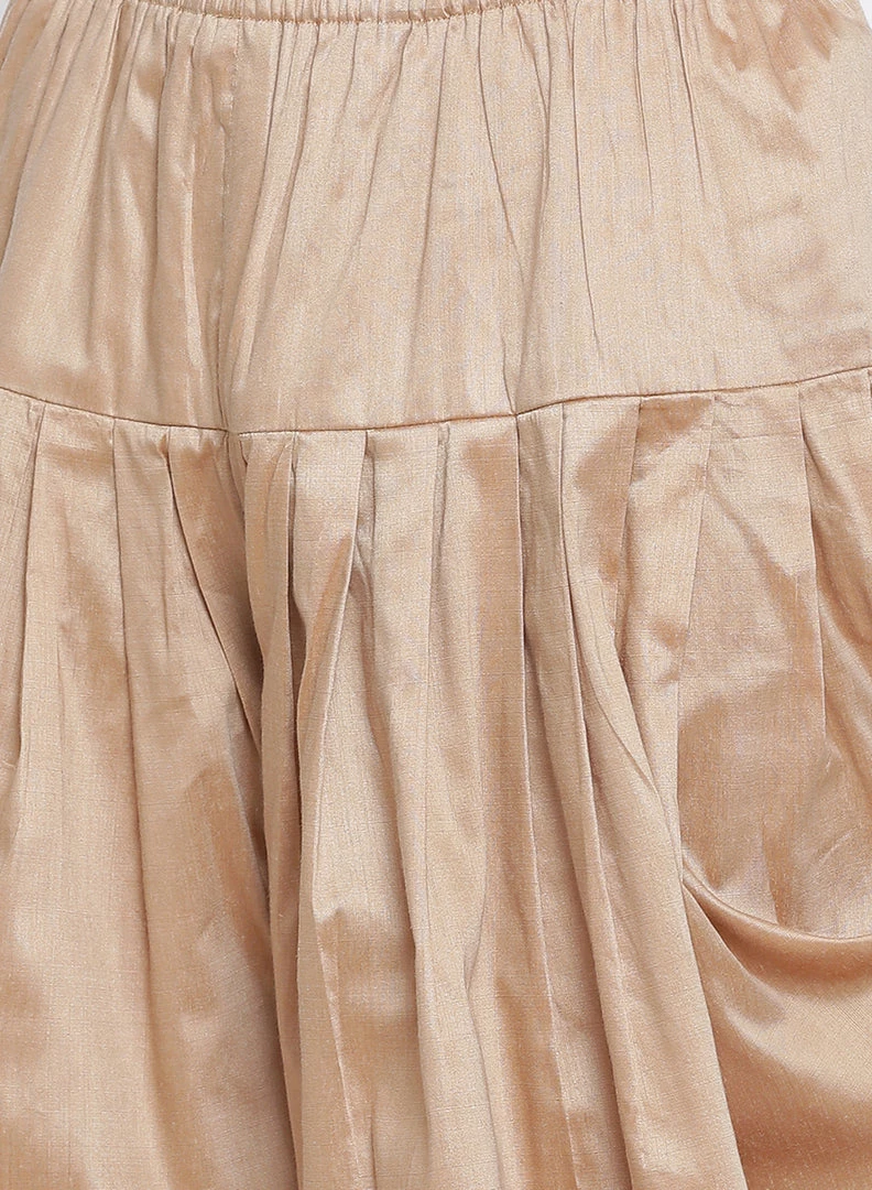 Gold toned solid dhoti pant, has elasticated waistband and drawstring closure