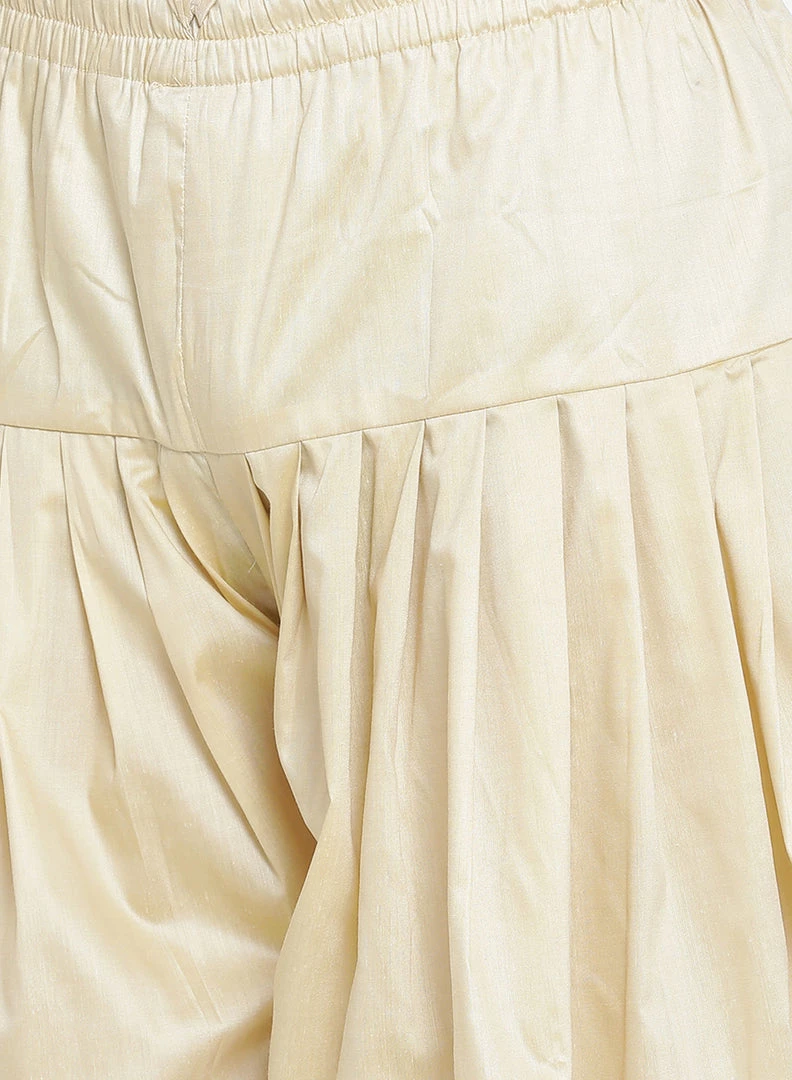 Beige solid dhoti pant, has elasticated waistband and drawstring closure