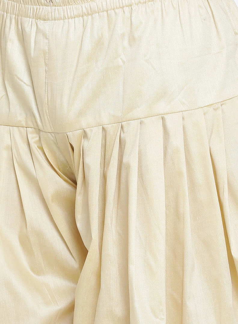 Beige solid dhoti pant has elasticated waistband and drawstring closure