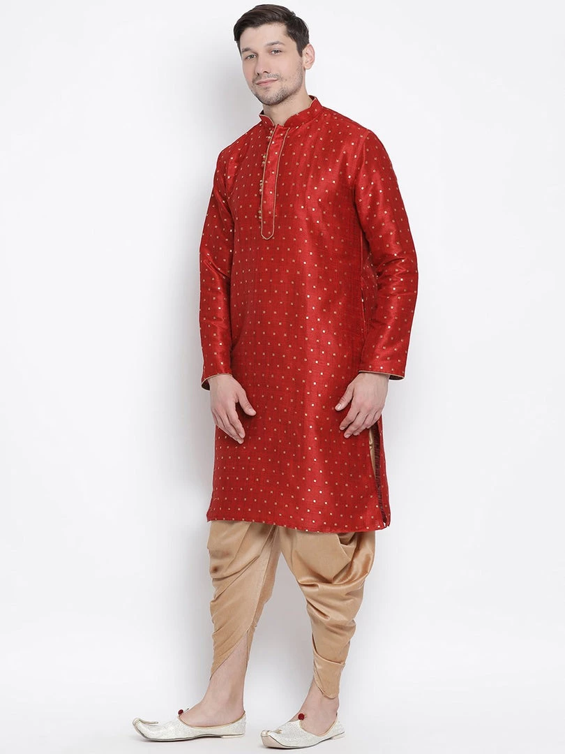 Maroon and golden woven kurta with solid dhoti pant