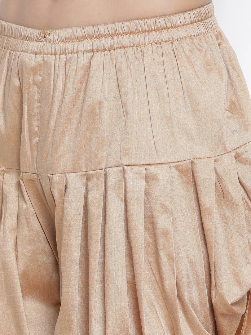 Golden solid dhoti pant, has elasticated waistband and drawstring closure