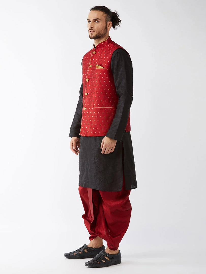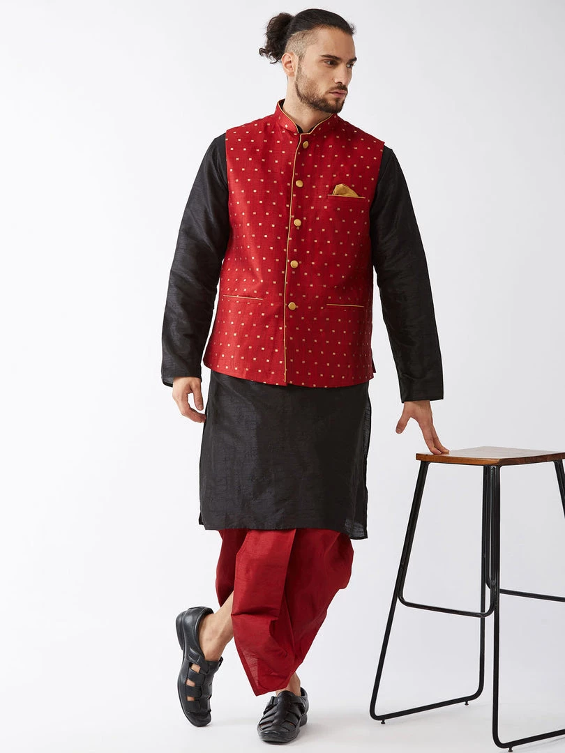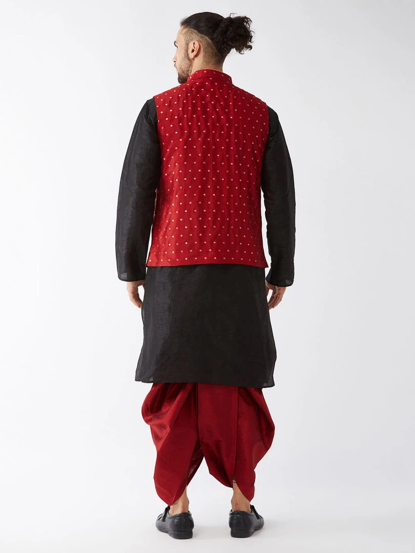 Black solid kurta with solid dhoti and woven Nehru jacket