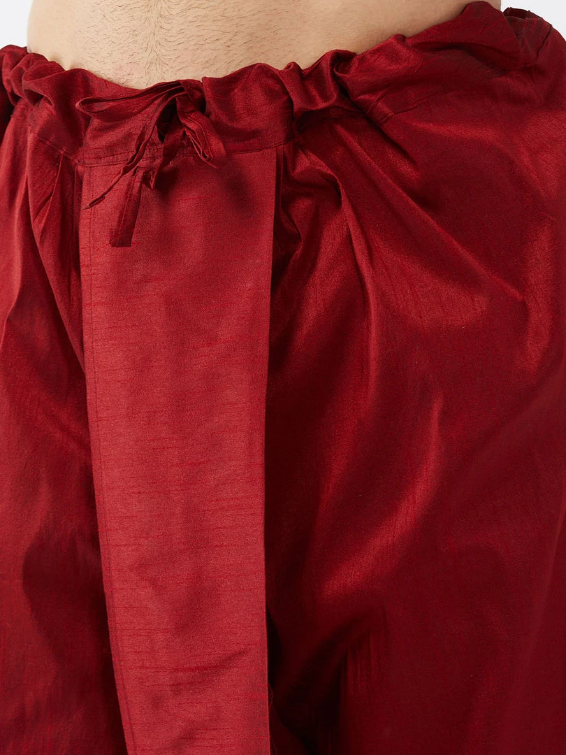 Maroon color solid traditional dhoti has a drawstring closure