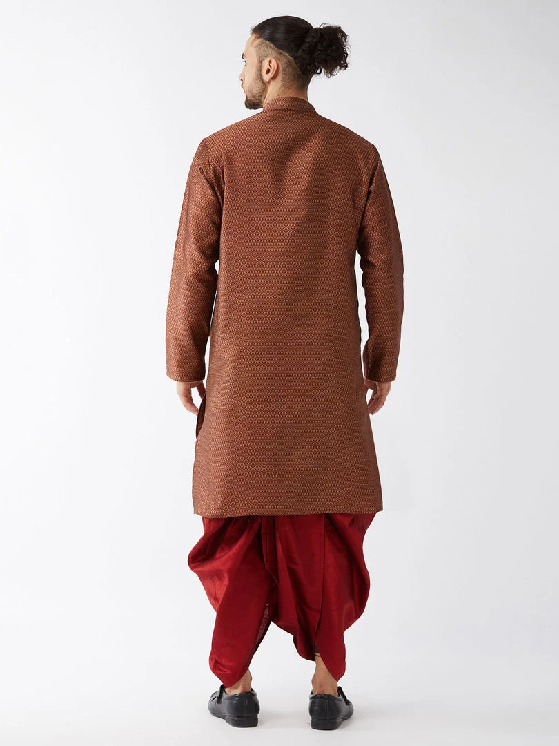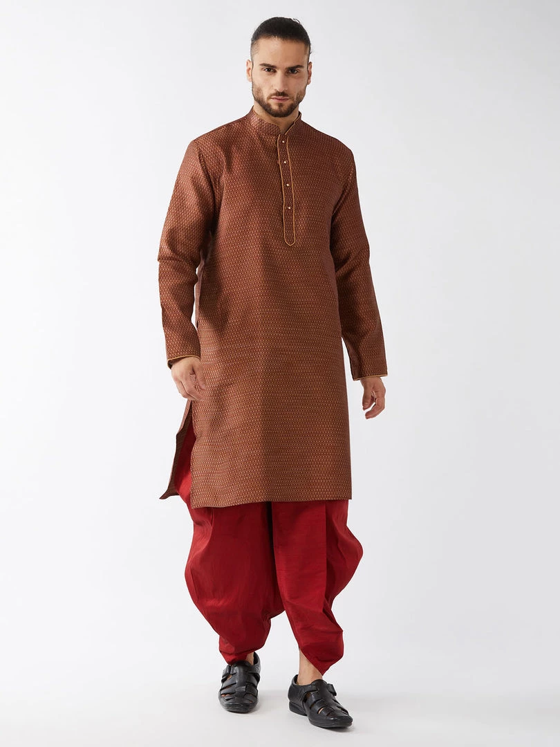 Maroon solid traditional dhoti has a waistband with a drawstring closure.