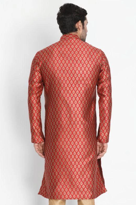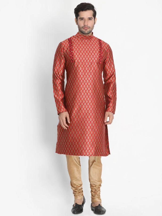 Maroon Woven Kurta, Long Sleeve, Straight hem, has Turtle Neck, Straight Knee-length, Side slits.
