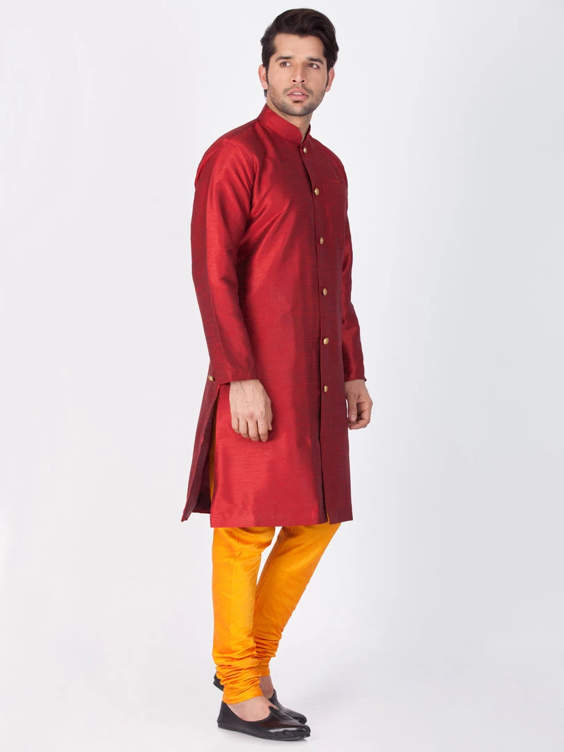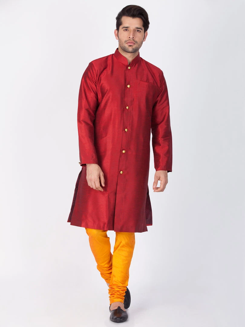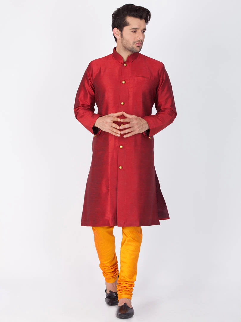 Sport this classic sherwani set from VASTRAMAY this season. Dress this piece up with your favorite accessories and head out to any family event in style.