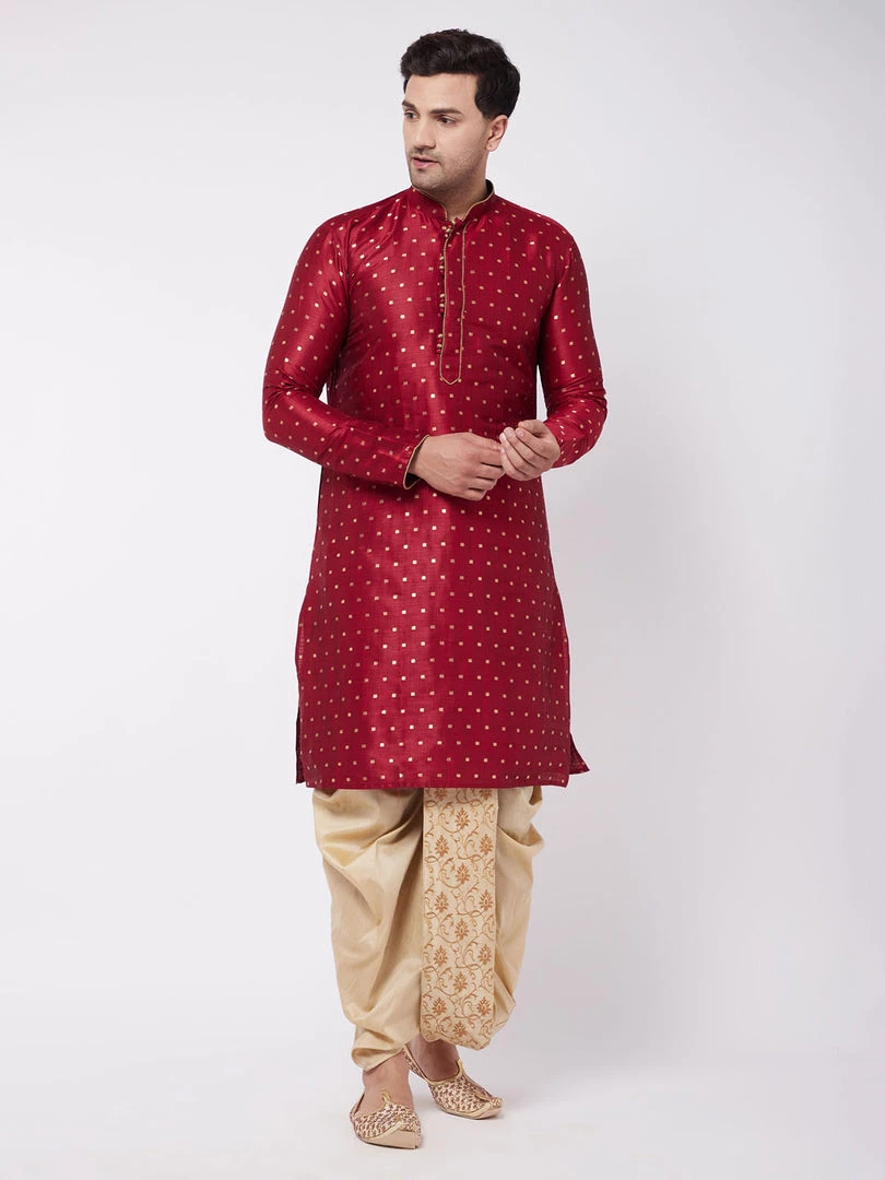 Maroon and Gold woven kurta with Embroidered dhoti pant set