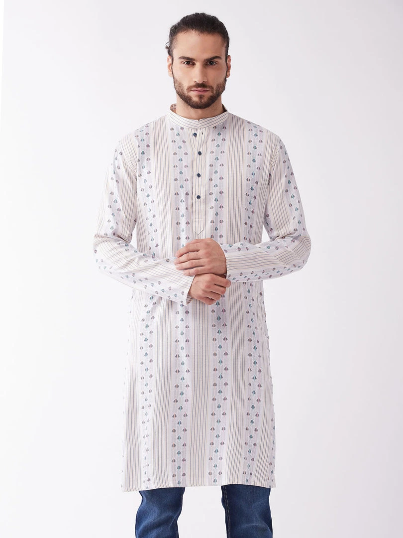 Woven design straight kurta, has a mandarin collar, and a straight hem