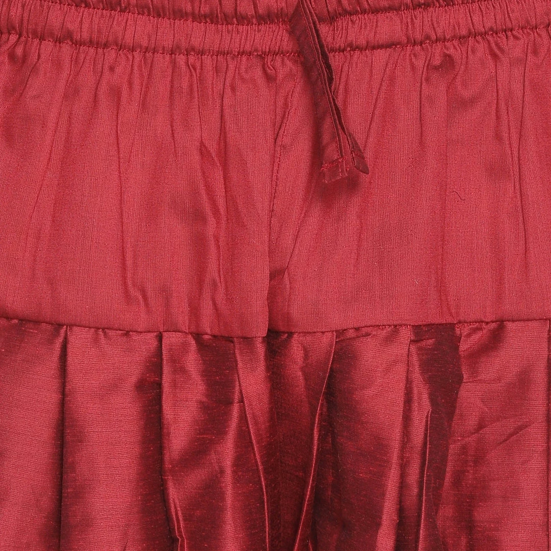Maroon solid dhoti pant, has a elasticated waistband and drawstring closure