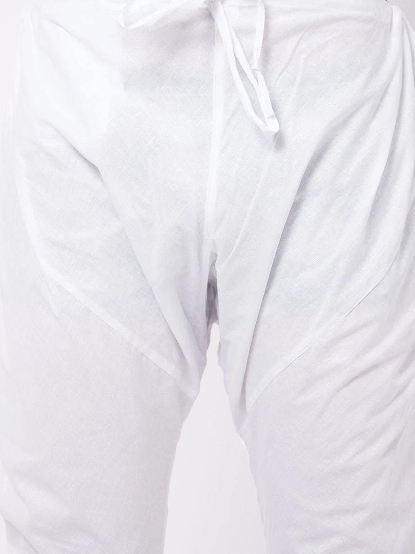 White solid churidar has a drawstring closure.