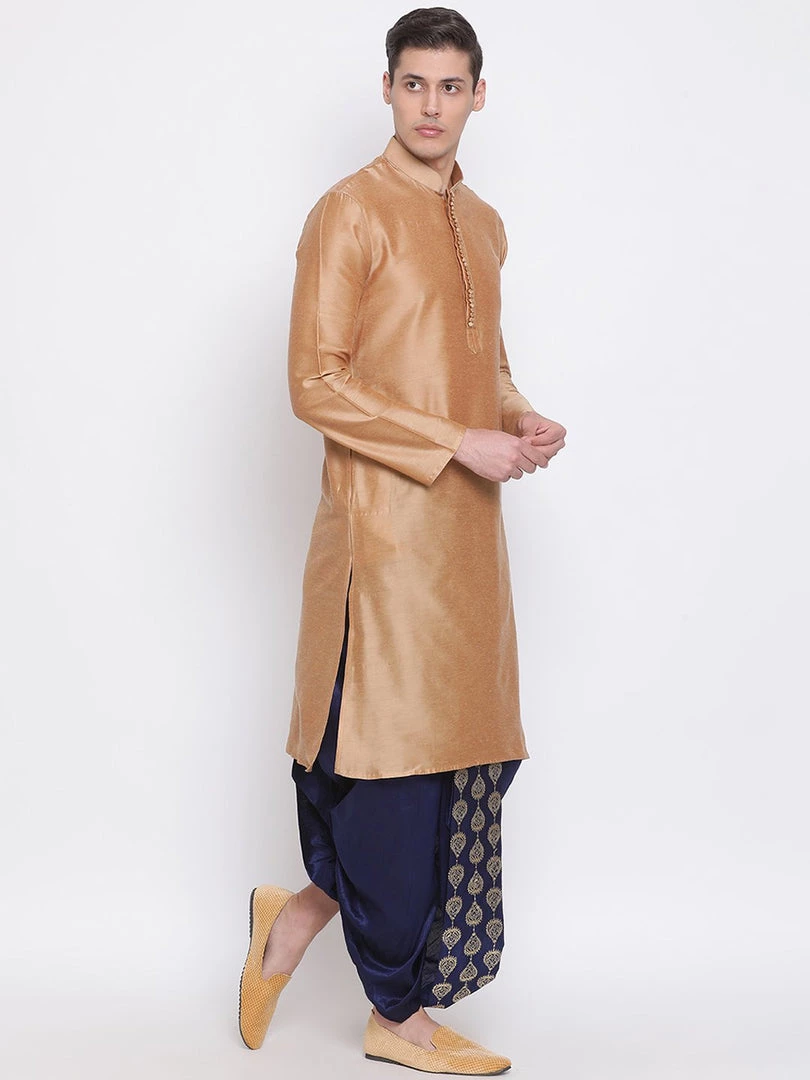 Dhoti is the traditional attire for men across India. It has marked its presence in various functions and proceedings. The silk fabric makes it appear richer and more sophisticated. Pair it with kurta for complete look