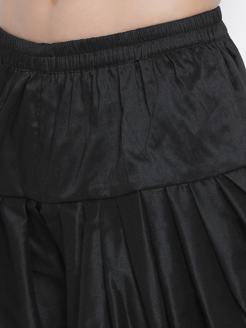 Black solid dhoti pant has an elasticated waistband and drawstring closure