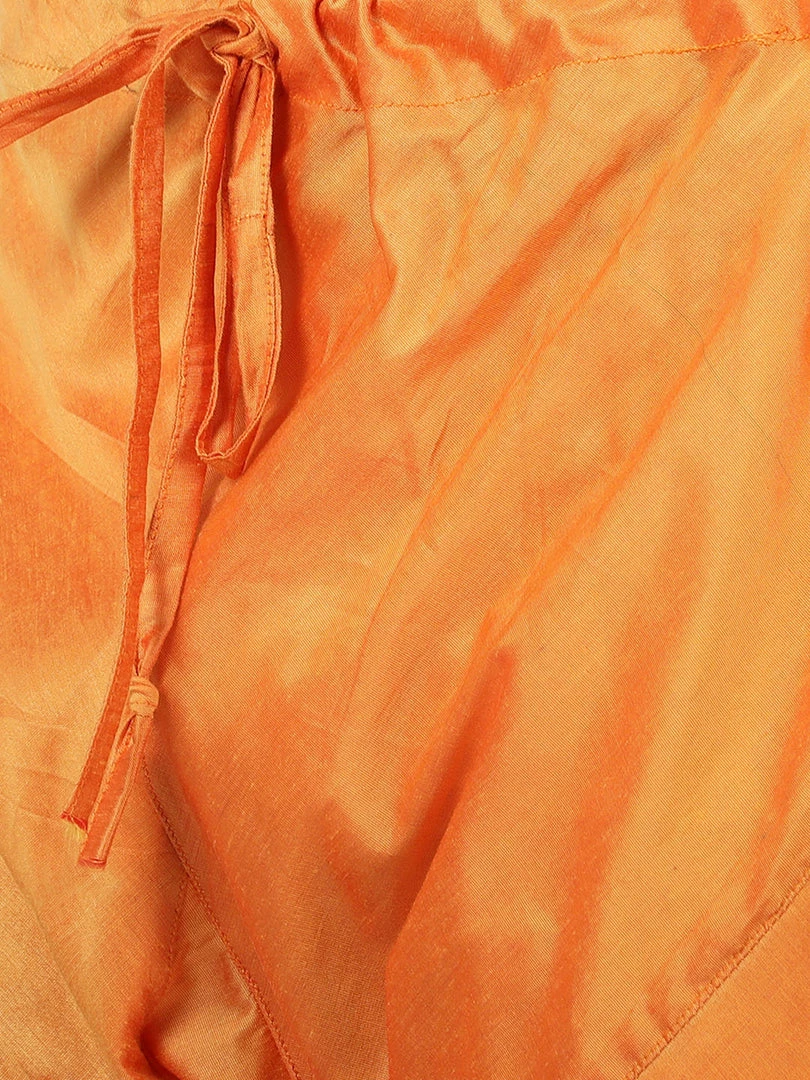 Orange color solid churidar, drawstring closure