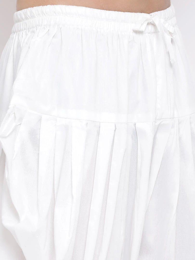 White solid cowl dhoti pant, has elasticated waistband and drawstring closure