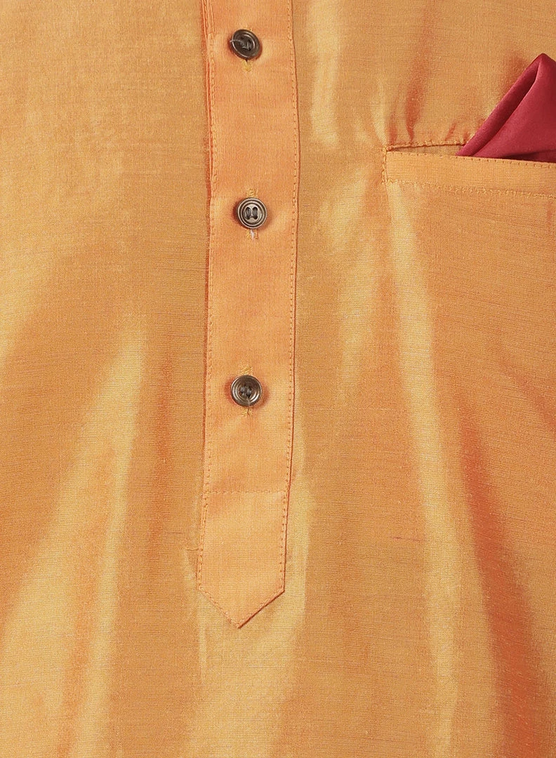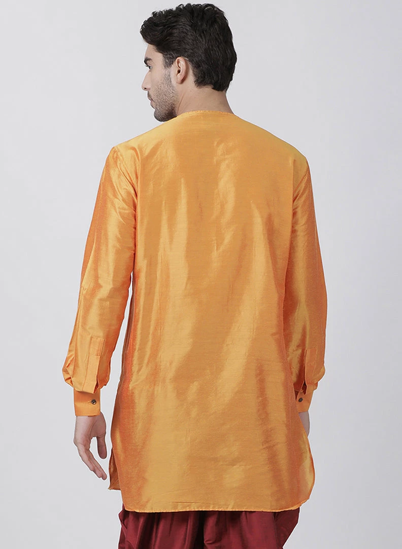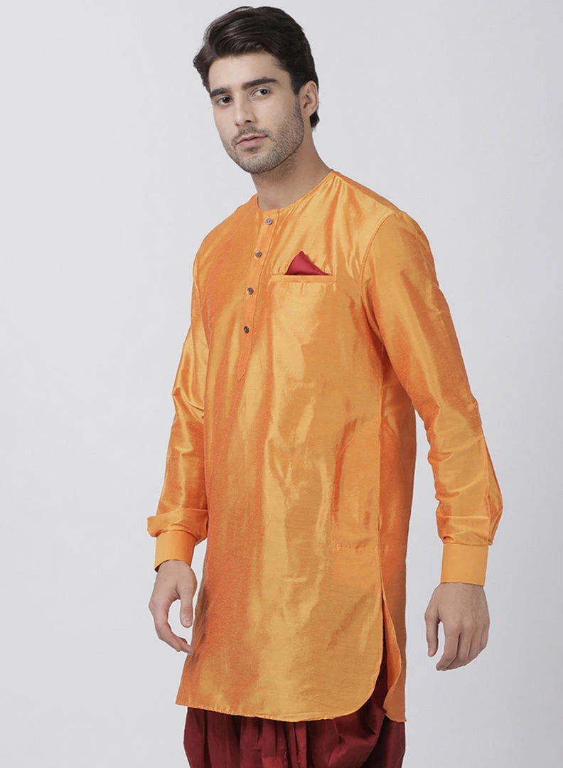 Orange solid straight Hip length kurta, has a Round Neck, button placket, long sleeves, Straight hem, Pocket with a pocket square.