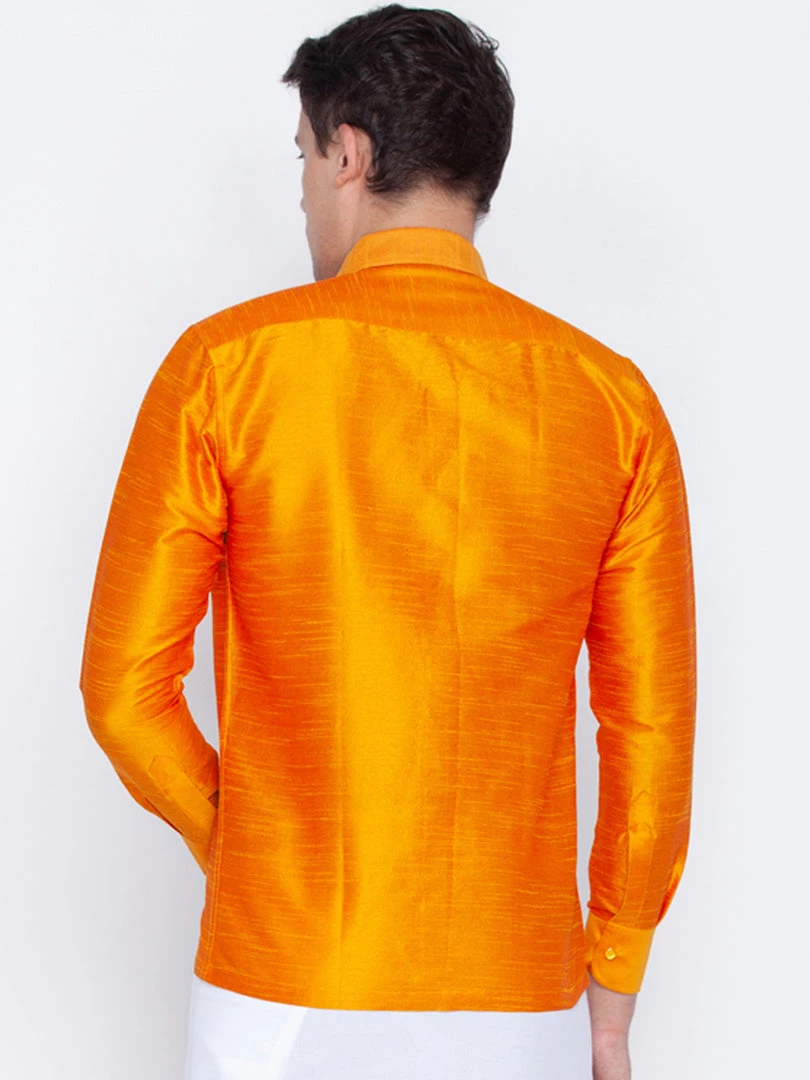Orange solid casual shirt, has a shirt collar, long sleeves, straight hem, one patch pocket