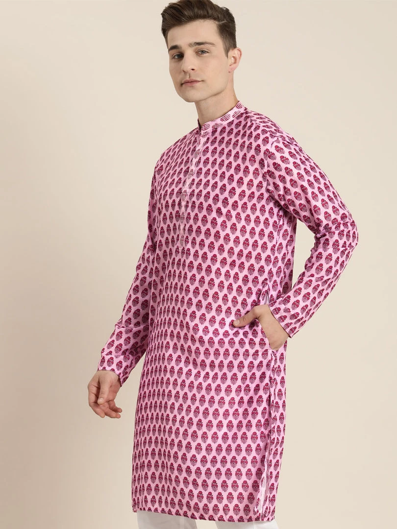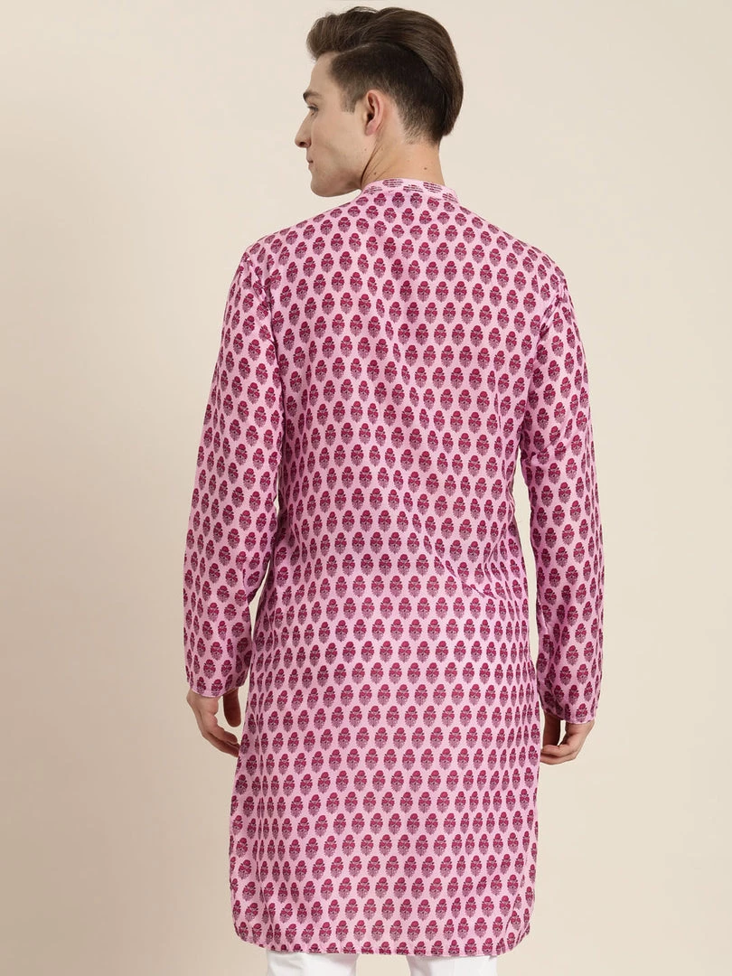 Pink cotton blend printed kurta