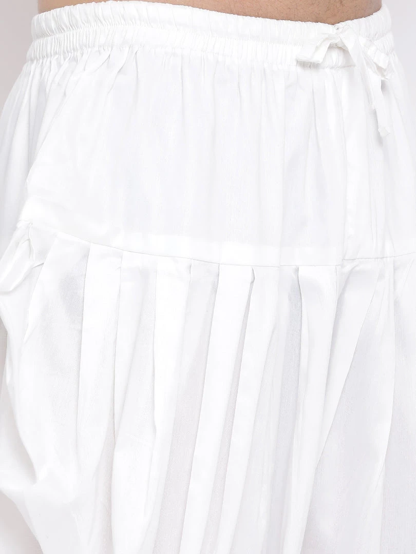 White solid cowl dhoti pant, has elasticated waistband and drawstring closure