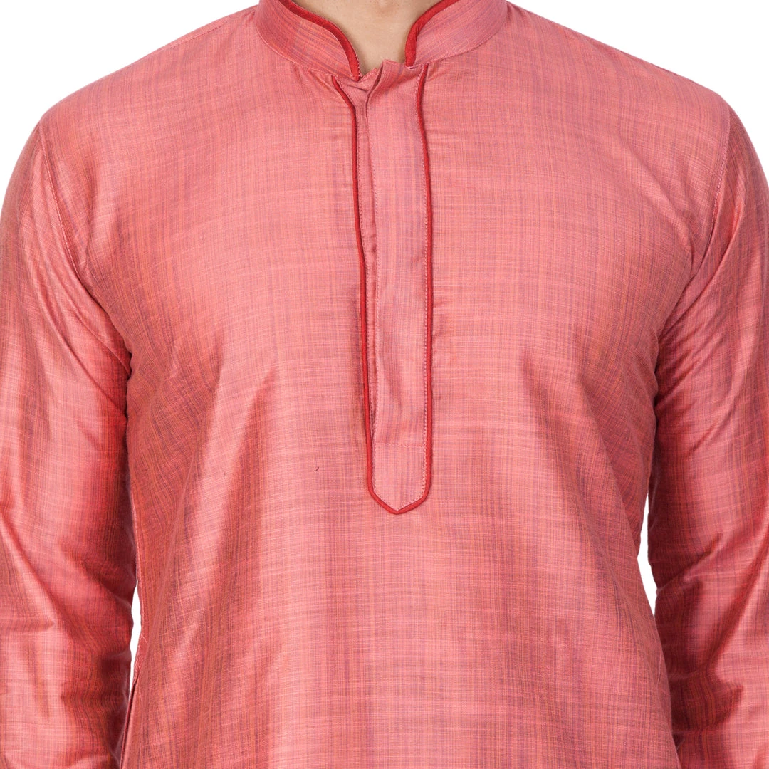 Pink straight knee length kurta, has a mandarin collar, long sleeves, button placket, straight hem