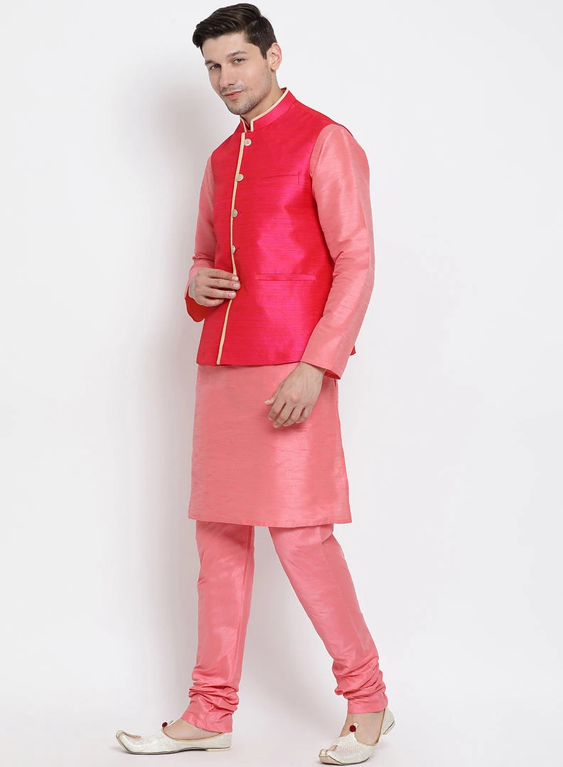 This elegant and trendy Kurta set from VASTRAMAY will be a great add-on to your ethnic collection. Team it with a pair of semiformal shoes or Kolhapuris to get the complete look.