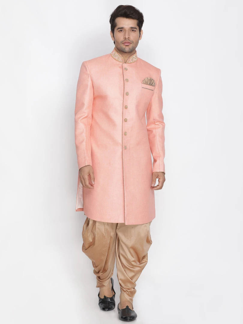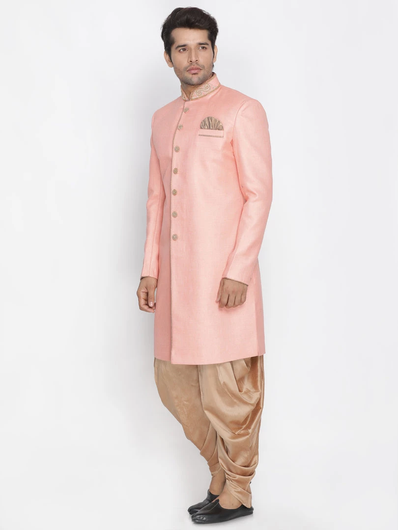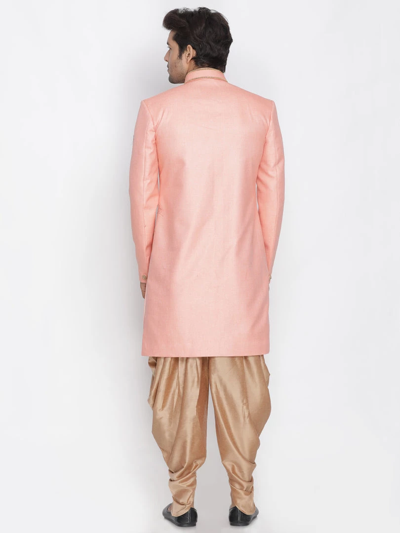 Pink solid sherwani with gold-toned solid dhoti pant