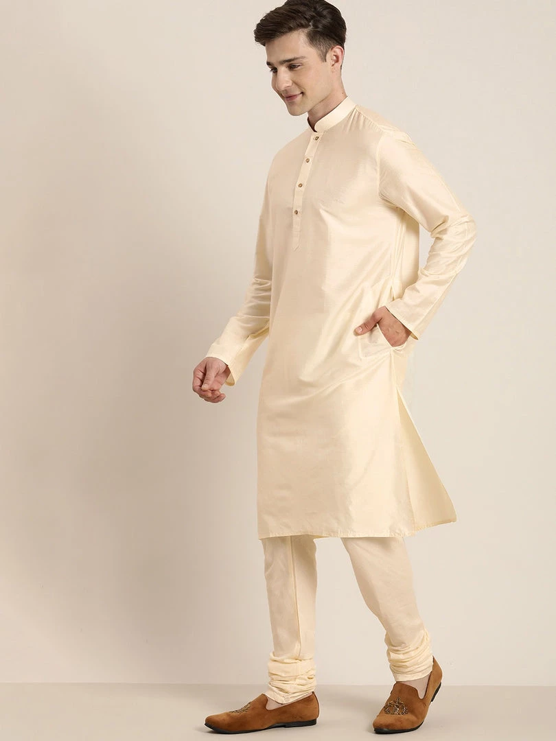 Beige solid Kurta with Churidar