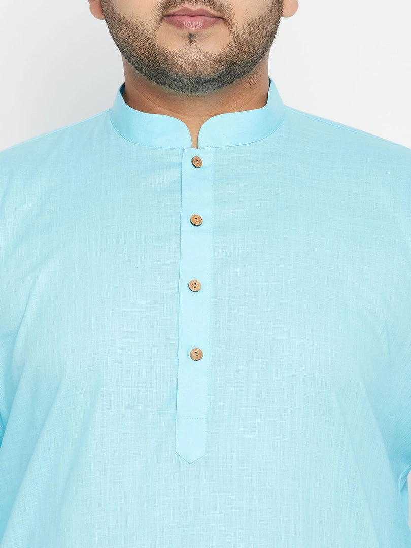 Aqua straight knee length kurta, has a mandarin collar, button placket, long sleeves, straight hem