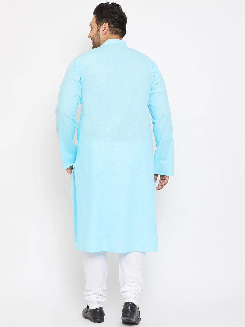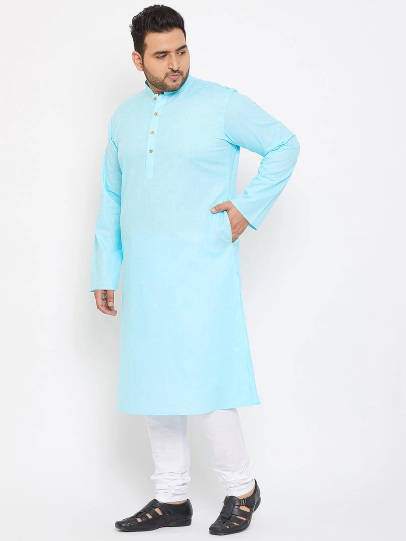 Aqua Blue solid knee length straight kurta, has a mandarin collar, long sleeves, button placket, Straight hem, side slits