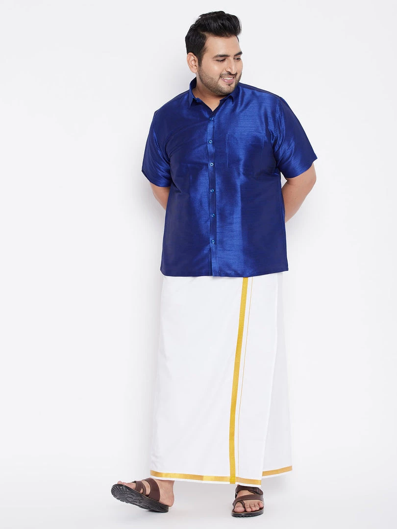 Blue solid ethnic shirt, has a shirt collar, half sleeves, full button placket, straight hem, side slits and a patch pocket