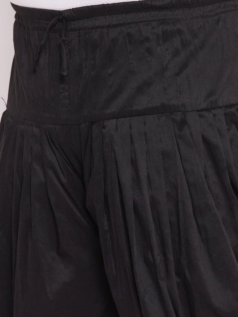 Black solid dhoti pant, has elasticated waistband and drawstring closure